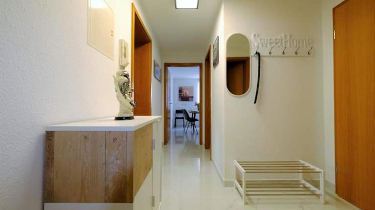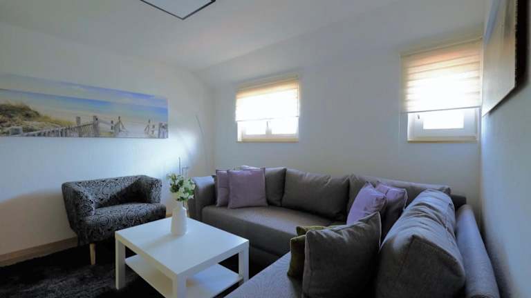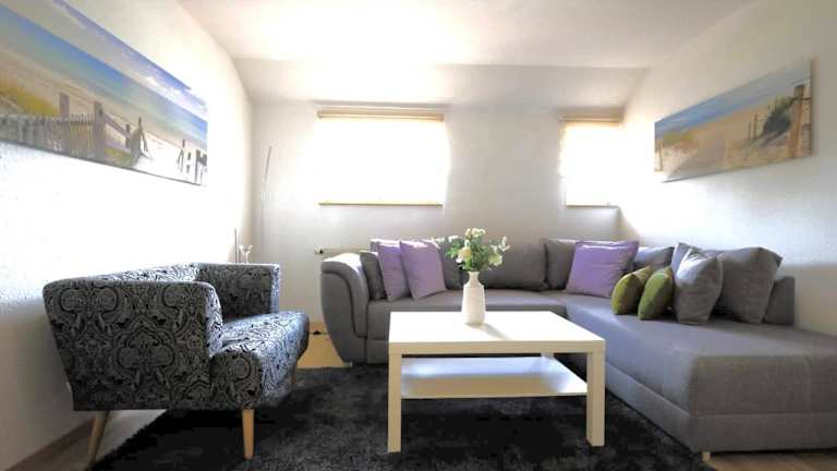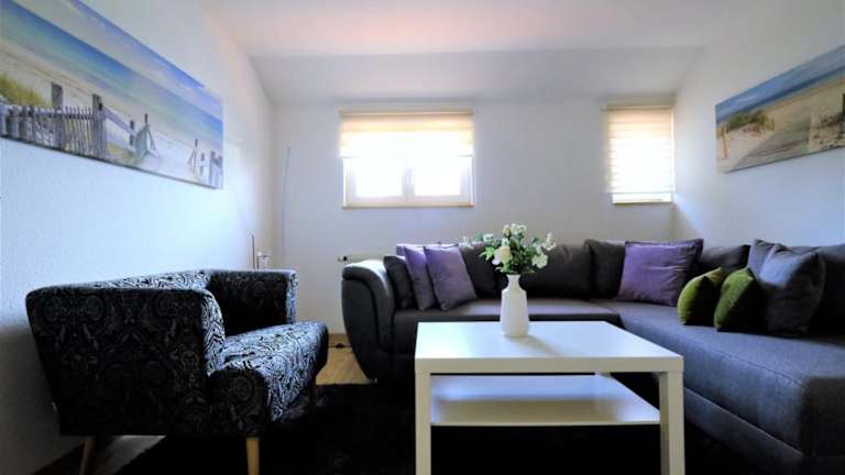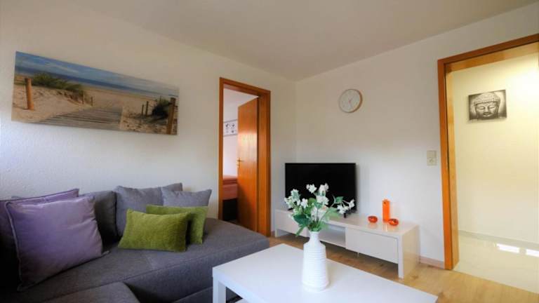 Die Ferienwohnung besteht aus zwei Schlafzimmern, einem Wohnzimmer und einer voll ausgestatteten Küche, die mit einem Kühlschrank und einer Kaffeemaschine ausgestattet ist. Zudem gibt es ein Badezimmer mit Dusche und Haartrockner. Handtücher und Bettwäsche werden bereitgestellt.