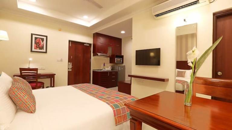 Die klimatisierten Zimmer im Lilac Hotel, 3rd Block bieten einen komfortablen Sitzbereich und eine voll ausgestattete Küchenzeile mit Mikrowelle und Kühlschrank. Das eigene Badezimmer ist mit einer Dusche, einem Haartrockner und kostenfreien Pflegeprodukten ausgestattet. Kostenloses WLAN ist in allen Zimmern verfügbar.