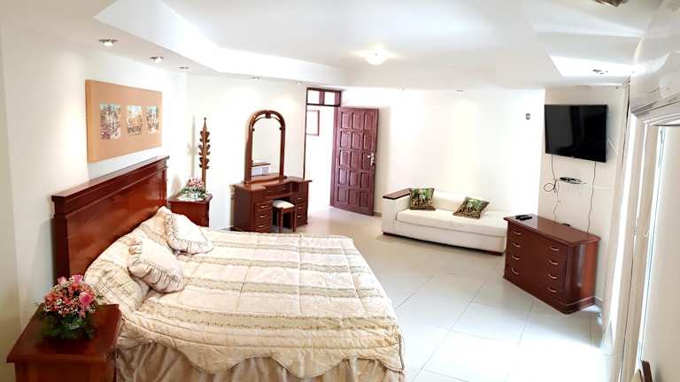 Das La Jara Backpackers Hostel in Santa Cruz de la Sierra bietet eine komfortable Unterkunft mit kostenfreiem WLAN und einem erfrischenden Außenpool. Das Hostel verfügt über verschiedene Zimmeroptionen, darunter Deluxe-Suiten mit eigenem Bad und andere Zimmer mit Zugang zu Gemeinschaftsbädern. Ein leckeres Frühstück ist im Preis inbegriffen. Das Hostel bietet eine 24-Stunden-Rezeption, einen schönen Garten, eine Bar und weitere Annehmlichkeiten wie eine Gemeinschaftslounge, einen Tourenschalter und eine Gepäckaufbewahrung. Kostenlose Parkplätze stehen zur Verfügung. Die Lage des Hostels ist günstig, in der Nähe von verschiedenen Sehenswürdigkeiten wie dem Güembé Biocentre und dem Park Guazú Ivaga. Der Arenal-Park und die Kathedrale Metropolitan sind ebenfalls nicht weit entfernt. Der internationale Flughafen Viru Viru ist nur 15 km entfernt.