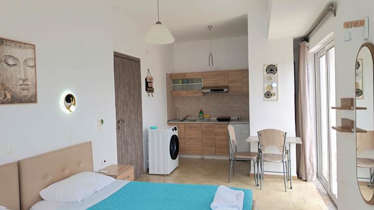 Die Unterkunft befindet sich 400 m vom Strand Akti Kanari entfernt und in der Nähe von Sehenswürdigkeiten wie den Hirsch-Statuen, dem Hafen Mandraki und dem Apollotempel. Der Flughafen Rhodos ist 12 km entfernt. Die Umgebung ist sehr geschäftig und laut durch die Bar, die sich im Gebäude befindet.