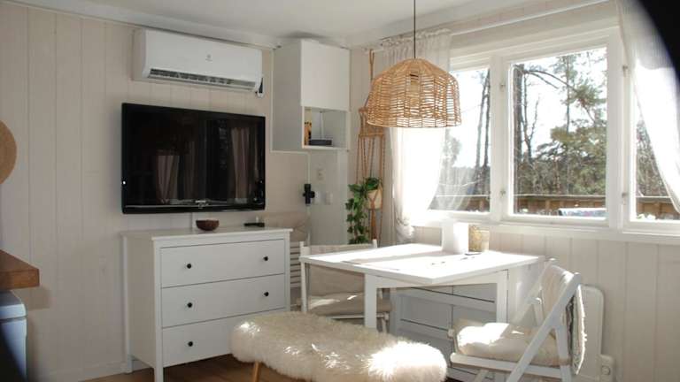 Das Ferienhaus verfügt über ein Schlafzimmer, ein Wohnzimmer sowie eine voll ausgestattete Küche mit Kühlschrank und Wasserkocher. Es gibt ein Badezimmer mit einer Dusche und einem Haartrockner. Bettwäsche und Handtücher sind nicht im Zimmerpreis enthalten, können aber gegen eine Gebühr bereitgestellt werden. Klimaanlage sorgt für zusätzlichen Komfort, und die Unterbringung ist in Nichtraucherzimmern möglich.