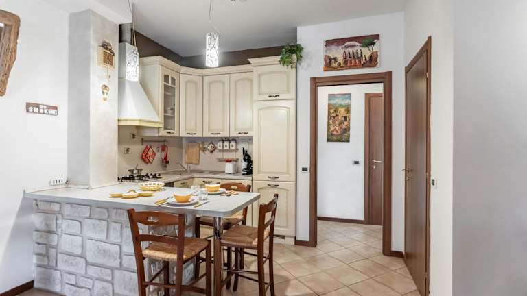 Die Ferienwohnung umfasst 1 Schlafzimmer, eine Küche mit Kühlschrank und Geschirrspüler, sowie ein Badezimmer mit Bidet, Haartrockner und Waschmaschine. Handtücher und Bettwäsche werden bereitgestellt.
