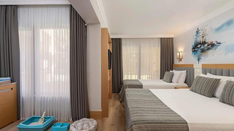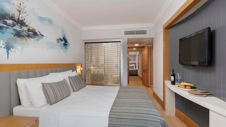 Die Zimmer im Limak Limra sind auf das Hauptgebäude sowie auf mehrere kleinere Bungalows verteilt. Insgesamt stehen den Gästen mit Doppelzimmern, Familienzimmern und Suiten 685 Unterkunftsmöglichkeiten zur Verfügung. Die Gesamtkapazität des Limak Limra beträgt 1360 Betten. Die Familienzimmer verfügen bei gleicher Ausstattung über einen zusätzlichen Wohn-/ Schlafraum. Die Zimmer sind elegant und modern eingerichtet und sind mit Laminate ausgelegt. Alle Zimmer verfügen über Badezimmer mit Badewanne (oder Dusche) und WC, Direktwahltelefon, SAT-TV mit Musikkanal, Haartrockner, Minibar, Safe und zentral gesteuerter Klimaanlage. Die geräumigen Zimmer verfügen ferner über eine Sitzecke sowie einen Balkon oder eine Terrasse.