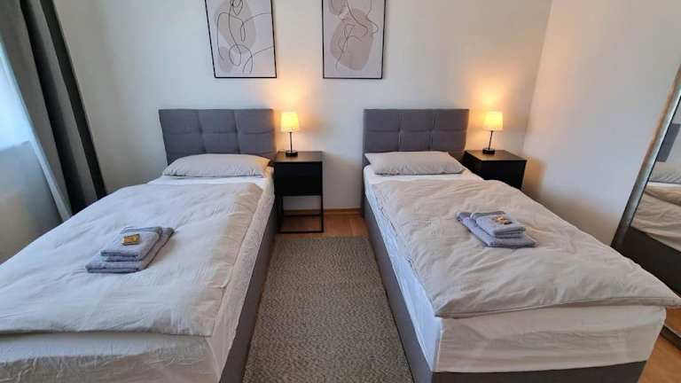 Die Ferienwohnung besteht aus zwei Schlafzimmern, einem Wohnzimmer und einem Badezimmer mit Dusche und kostenlosen Pflegeprodukten. Die Unterkunft bietet Nichtraucherzimmer und auch öffentliche sowie private Bereiche sind Nichtraucherzonen. WLAN steht in allen Bereichen zur Verfügung.