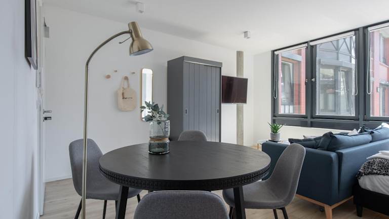 Die Unterkünfte im limehome Flensburg Holm sind modern und komfortabel eingerichtet. Jede Unterkunft verfügt über einen gemütlichen Sitzbereich und einen Flachbild-TV. Die gut ausgestattete Küchenzeile bietet einen Essbereich und verfügt über einen Toaster, einen Kühlschrank, ein Kochfeld, eine Kaffeemaschine und einen Wasserkocher. Das private Badezimmer ist mit einem Haartrockner ausgestattet. WLAN nutzen Sie in allen Bereichen kostenfrei.