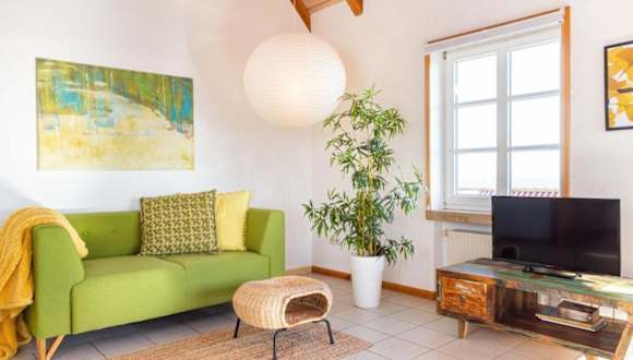 Die Ferienwohnung umfasst ein Schlafzimmer und besitzt eine Küchenzeile mit Kühlschrank und Ofen. Zudem ist eine Waschmaschine vorhanden. Handtücher und Bettwäsche sind in der Unterkunft inbegriffen.