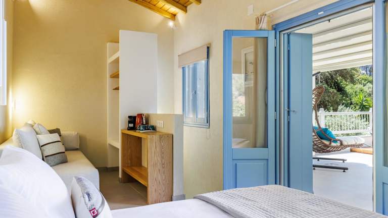 Die Zimmer sind mit einer Klimaanlage ausgestattet und bieten einen Kleiderschrank sowie ein eigenes Badezimmer. Jede Wohneinheit verfügt über eine Terrasse mit Meerblick, einen Flachbild-TV, Bettwäsche, Handtücher und einen Kühlschrank.