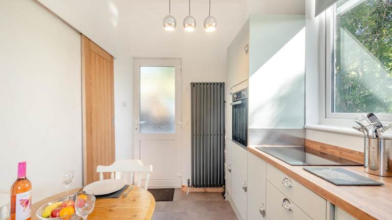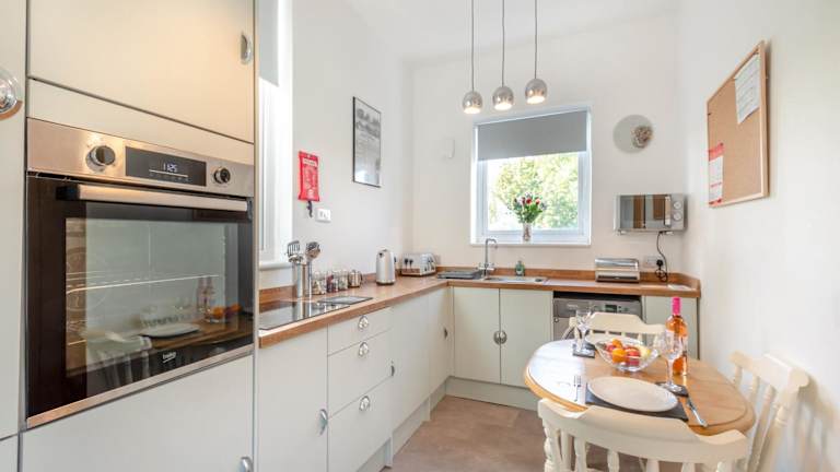 Die Unterkunft verfügt über ein Schlafzimmer und eine voll ausgestattete Küche. Handtücher und Bettwäsche werden bereitgestellt, und es stehen Annehmlichkeiten wie Heizung und ein Fernseher zur Verfügung.