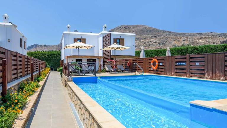 Die Villa im Lindos Ruby verfügt über 2 Schlafzimmer und 1 Badezimmer. Die klimatisierten Zimmer sind gemütlich und komfortabel eingerichtet und bieten Ihnen eine erholsame Atmosphäre. Die Villa verfügt über Sat-TV und eine voll ausgestattete Küche, in der Sie Ihre eigenen Mahlzeiten zubereiten können. Bettwäsche und Handtücher werden gestellt, um Ihnen einen angenehmen Aufenthalt zu ermöglichen. Genießen Sie auch die Terrasse mit einem herrlichen Blick auf die umliegenden Berge.