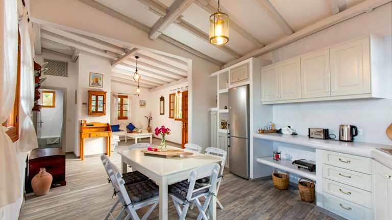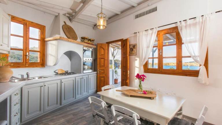 In der Lindos Seaside Villa steht eine voll ausgestattete Küche mit einem Kühlschrank und einer Kaffeemaschine zur Verfügung. Zudem werden Handtücher und Bettwäsche bereitgestellt.