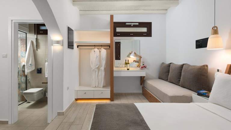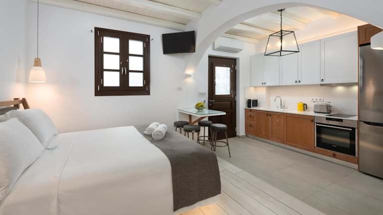 Die Lindos Shore Junior Suite verfügt über ein Schlafzimmer, ein Badezimmer, eine voll ausgestattete Küche und einen Flachbild-TV mit Satellitenkanälen. Zur Ausstattung gehören auch Bettwäsche, Handtücher sowie eine Terrasse mit Stadtblick. Allergikerfreundliche Zimmer sind ebenfalls verfügbar.
