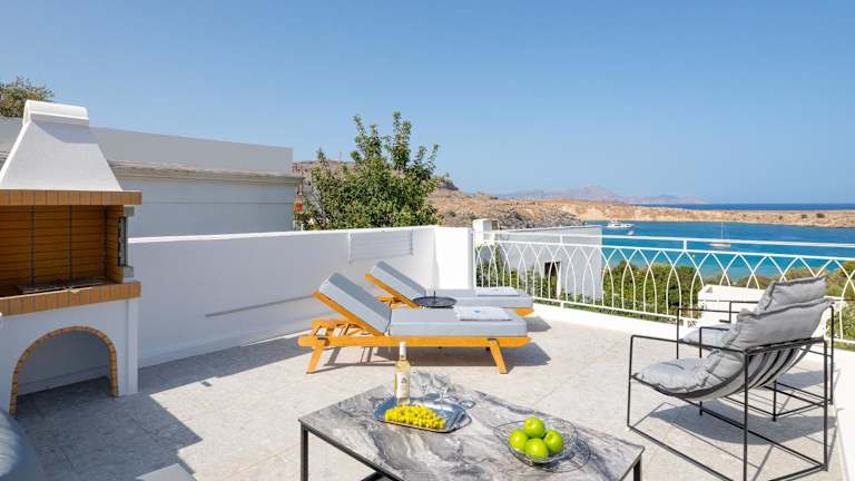 Lindos Shore Junior Suite bietet klimatisierte Übernachtungsmöglichkeiten mit Blick auf das Meer und die Berge. Die Unterkunft verfügt über Annehmlichkeiten wie eine Veranda oder Terrasse und kostenfreies WLAN. Ein kostenloser Parkplatz ist ebenfalls vorhanden. Tägliche Reinigungsdienste sorgen für einen hohen Hygienestandard.