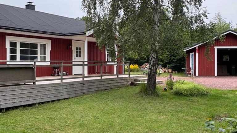 Mariehamn, in der Nähe des Flughafens Mariehamn, nur 11 km entfernt. Die Unterkunft bietet einen direkten Zugang zu einem eigenen Strandbereich und ist von einem Garten umgeben.