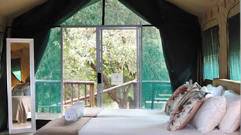 Die luxuriösen Zelte im Lions Rock Rapids - Luxury Tented Camp bieten den Gästen einen einzigartigen und komfortablen Aufenthalt. Jedes Zelt verfügt über Klimaanlage und kostenfreie Privatparkplätze. Die Gäste können sich in den gemütlichen Zelten entspannen und den Komfort und die Annehmlichkeiten genießen, die zur Verfügung gestellt werden.