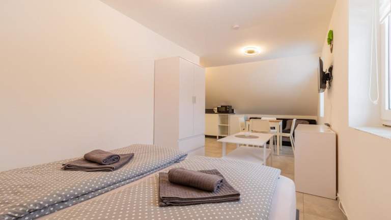 Die Ferienwohnung umfasst 1 Schlafzimmer, 1 Badezimmer sowie eine voll ausgestattete Küchenzeile. Zur Ausstattung gehören Bettwäsche, Handtücher, ein Flachbild-TV und eine Terrasse mit Blick auf die Stadt.