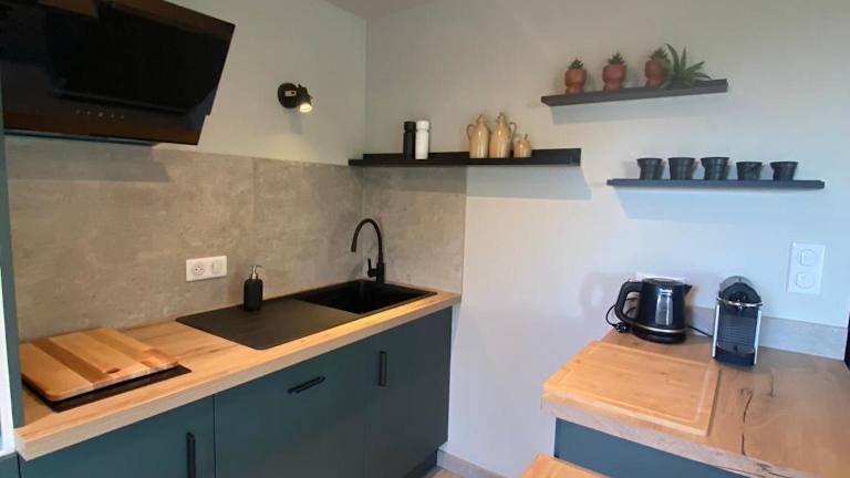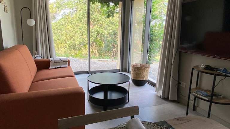 Die Ferienwohnung verfügt über 1 Schlafzimmer und 1 Badezimmer. Zur Ausstattung gehören Bettwäsche, Handtücher, ein Flachbild-TV mit Kabelkanälen, ein Essbereich, eine voll ausgestattete Küche sowie eine Terrasse mit Blick auf den Garten.