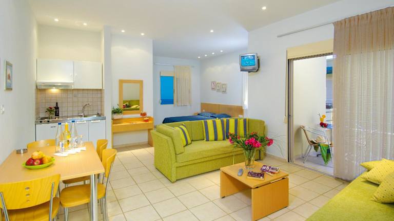 Die Zimmer im Hotel Lissos Beach sind klimatisiert und bieten Ihnen einen Balkon oder eine Terrasse mit Blick auf das Meer oder den Garten. Jedes Zimmer verfügt über einen TV und eine voll ausgestattete Küche mit Kühlschrank und Wasserkocher. Das Badezimmer ist mit einer Badewanne oder Dusche ausgestattet und ein Haartrockner steht Ihnen zur Verfügung. Die Unterkünfte sind gemütlich und bieten Ihnen alles, was Sie für einen angenehmen Aufenthalt benötigen.