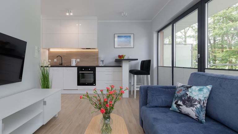 Die Little Laguna Apartments Sauna & Parking by Noclegi Renters bietet eine komfortable Unterkunft mit einem Garten und kostenlosen WLAN-Zugang. Zu den Einrichtungen gehören ein Fitnessraum und eine Sauna. Die Unterkunft gewährleistet Ruhe, da Feiern wie Junggesellenabschiede nicht erlaubt sind. Ein Schwerpunkt wird auf den Schutz von Minderjährigen gelegt, welche die Unterkunft nur in Begleitung eines Erwachsenene betreten dürfen.