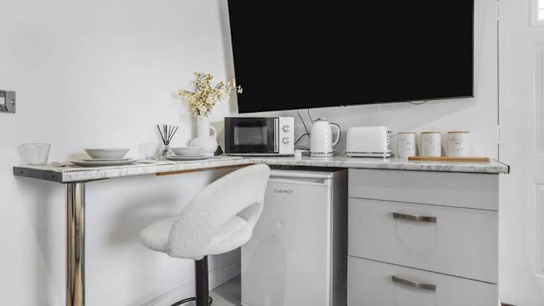 Die Ferienwohnung verfügt über 1 Schlafzimmer und eine Küchenzeile, die mit einem Kühlschrank und einer Mikrowelle ausgestattet ist. Zu den weiteren Annehmlichkeiten gehören ein Flachbild-TV, ein Sitzbereich sowie ein Badezimmer mit Dusche. Handtücher und Bettwäsche werden bereitgestellt.
