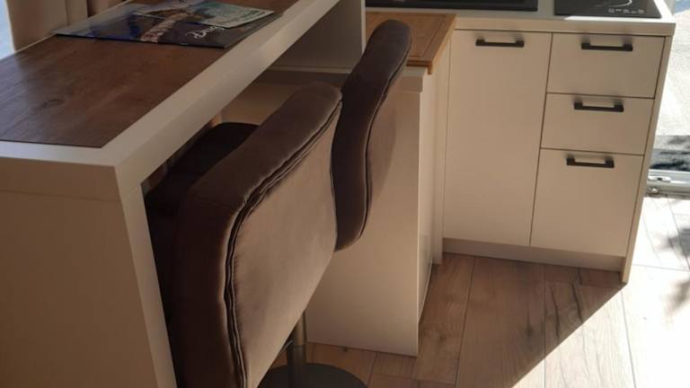 Die Ferienwohnung verfügt über eine Küche, die mit einem Kühlschrank, einer Herdplatte und einer Kaffeemaschine ausgestattet ist.