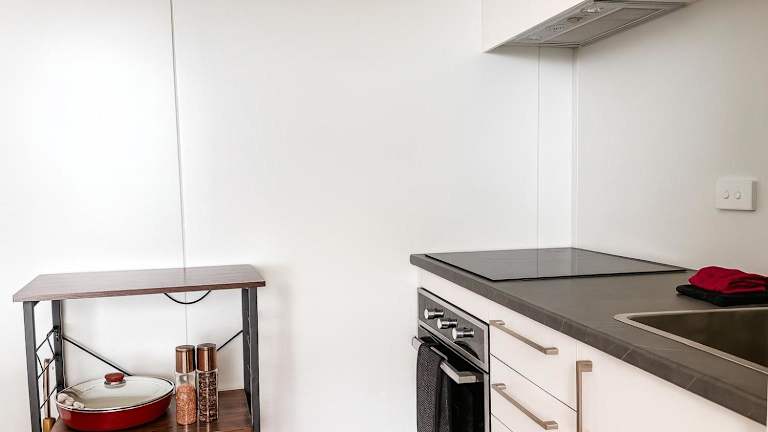 Die Unterkunft bietet eine Küchenzeile, die mit einem Kühlschrank und einem Ofen ausgestattet ist, um den Gästen Kochmöglichkeiten zu bieten. Es sind keine spezifischen Verpflegungsmöglichkeiten angegeben.