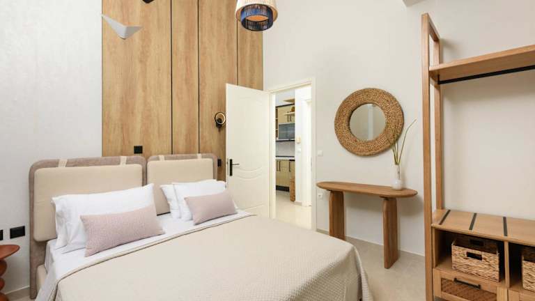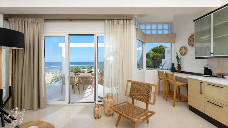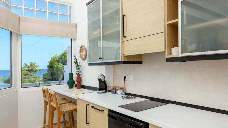 Die Unterbringung besteht aus einem Schlafzimmer und einer voll ausgestatteten Küchenzeile. Zu den Annehmlichkeiten gehört ein Balkon mit Meerblick. Zudem werden Handtücher und Bettwäsche bereitgestellt. Die Unterkunft ist klimatisiert und bietet einen direkten Zugang zu einem Balkon.