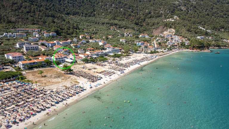 Das Hotel Litus Aureum befindet sich in Chrisi Ammoudia, nur 100 Meter vom Golden Beach entfernt. In der Nähe liegen Sehenswürdigkeiten wie das Traditional Settlement of Panagia (4,1 km) und die Ancient Agora (11 km). Der Hafen von Thassos ist 12 km entfernt, während der Flughafen Kavala in einer Distanz von 33 km zu finden ist.