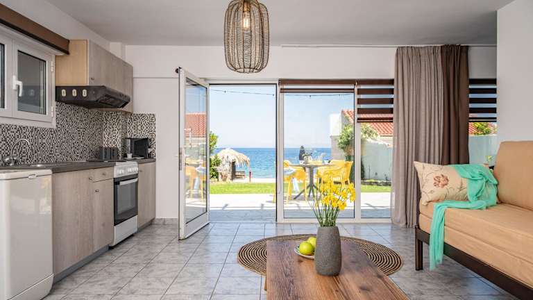Livadaki Elegant Seaside Apartment ist eine private Unterkunft, die mit einem Garten, einer Terrasse und einem eigenen Strandbereich ausgestattet ist. Die Unterkunft bietet kostenloses WLAN und Meerblick. Das Landhaus eignet sich gut für Familien und enthält klimatisierte Räumlichkeiten.