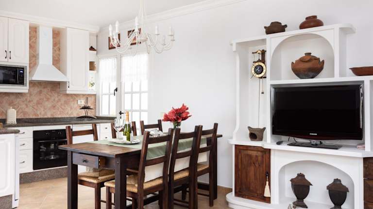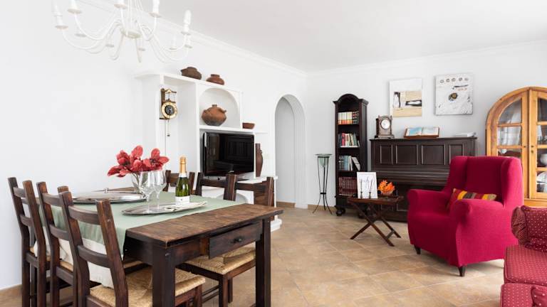 Die Ferienwohnung umfasst 3 Schlafzimmer, 1 Badezimmer, Bettwäsche und Handtücher. Zudem ist ein TV, ein Essbereich, eine voll ausgestattete Küche sowie eine Terrasse mit Meerblick vorhanden.