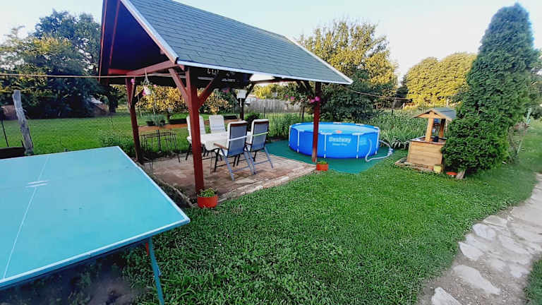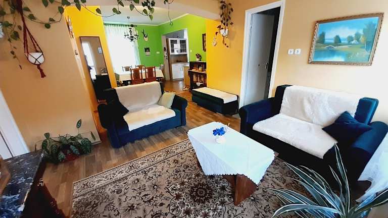 Das Apartment im Livi Apartman bietet Platz für bis zu 4 Personen und verfügt über 2 Schlafzimmer, ein Wohnzimmer, eine voll ausgestattete Küche und ein Badezimmer. Die Zimmer sind gemütlich eingerichtet und bieten einen herrlichen Blick auf den Garten. Zur Ausstattung gehören ein Flachbild-TV, kostenfreies WLAN und kostenfreie Privatparkplätze. Das Apartment verfügt auch über eine Terrasse, auf der Sie die frische Luft und die schöne Umgebung genießen können.