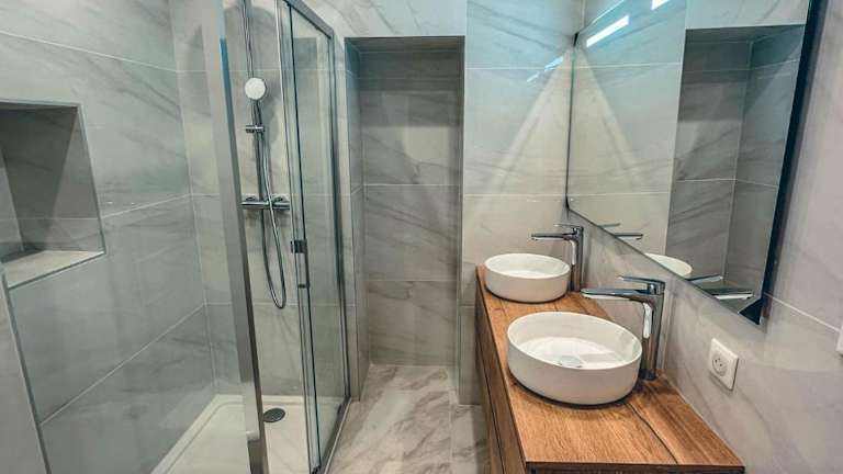 Die Ferienwohnung verfügt über drei separate Schlafzimmer, ein Wohnzimmer und eine voll ausgestattete Küche, die mit einem Ofen und einer Herdplatte ausgestattet ist. Es stehen zwei Badezimmer zur Verfügung. Zur technischen Ausstattung gehört ein Flachbild-TV. Die Unterkunft ist klimatisiert und es gibt kostenlosen WLAN-Zugang in allen Bereichen.