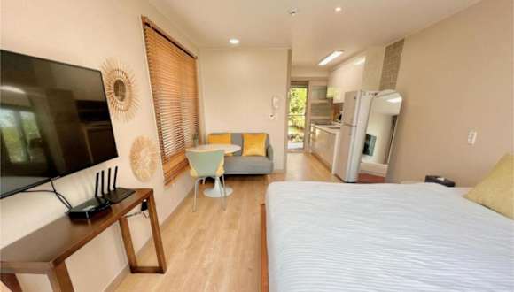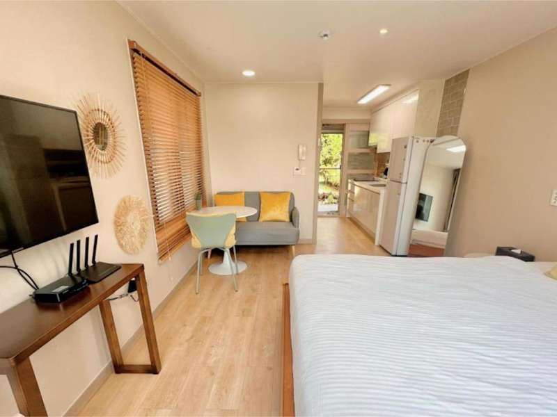 Living in Jeju Island bietet klimatisierte Übernachtungsmöglichkeiten. Die Unterkunft präsentiert sich als Ferienwohnung mit einer Veranda oder einem Patio sowie kostenlosem WLAN.