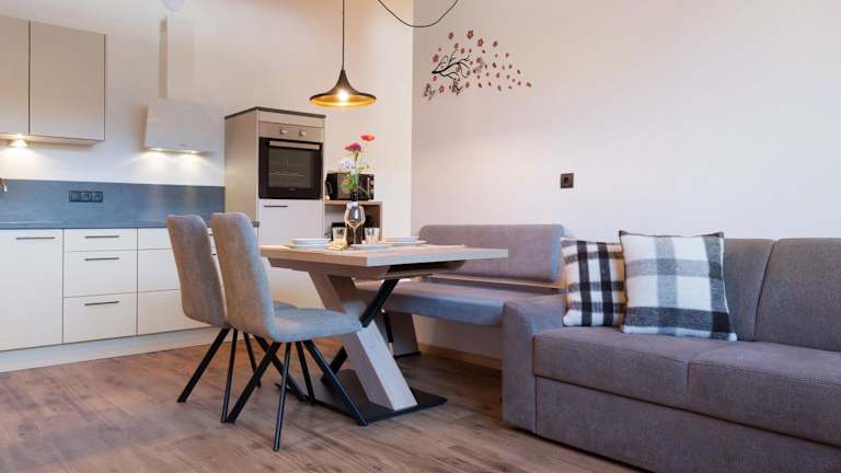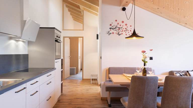 Living Lerchna - Schöne Aussicht 2 bietet Übernachtungsmöglichkeiten in einer Ferienwohnung mit Gartenblick und direktem Zugang zur Skipiste. Die Ausstattung umfasst eine gut ausgestattete Küche sowie einen Balkon mit Bergblick.