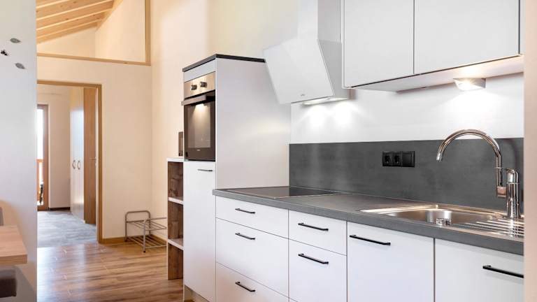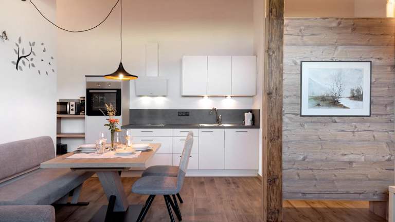 Die Ferienwohnung umfasst ein Schlafzimmer, ein Wohnzimmer und ein Badezimmer mit Dusche. Zudem ist eine gut ausgestattete Küche mit Kühlschrank und Geschirrspüler vorhanden. Ein Balkon mit Bergblick erweitert den Wohnraum, und Handtücher sowie Bettwäsche werden bereitgestellt.