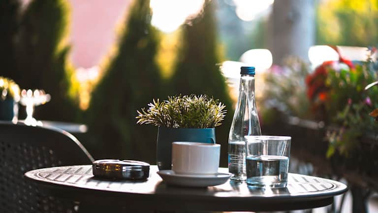 Auf der Terrasse des Hotels können die Gäste das schöne Wetter genießen und sich entspannen.