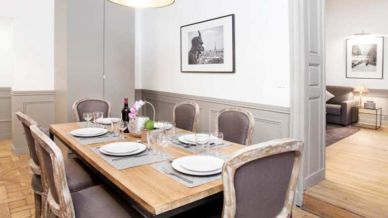 Das LivinParis - Luxury 2 Bedrooms Le Marais I ist ein charmantes und geräumiges Apartment im Herzen des angesagten Pariser Stadtteils Marais. Mit seinen hohen Decken, Holzbalken und Steinwänden versprüht das 80 m² große Apartment einen einzigartigen Charme. Kostenloses WLAN und ein Flachbild-Sat-TV sorgen für Unterhaltung und Komfort. Die gut ausgestattete Küche mit Geschirrspüler und Mikrowelle ermöglicht es Ihnen, Ihre Mahlzeiten ganz nach Ihren Wünschen zuzubereiten. Die Unterkunft befindet sich in der Nähe von Restaurants, Bars und Lebensmittelgeschäften, so dass Sie alle Annehmlichkeiten in unmittelbarer Nähe haben. Die zentrale Lage des Apartments ermöglicht es Ihnen, viele Sehenswürdigkeiten wie die Place de la République, das Centre Pompidou und die Kathedrale Notre Dame zu Fuß oder mit der U-Bahn zu erreichen.