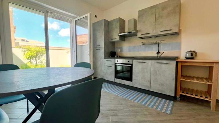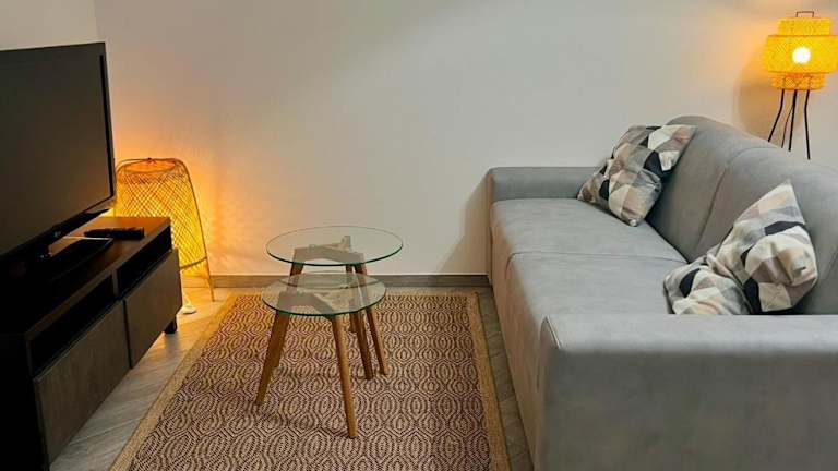 Die Ferienwohnung bietet ein Schlafzimmer, ein Wohnzimmer und eine voll ausgestattete Küchenzeile mit Kühlschrank und Kaffeemaschine. Das Badezimmer ist mit einem Bidet und einer Dusche ausgestattet. Zur Ausstattung gehören auch Klimaanlage, WLAN sowie Gartenmöbel im Außenbereich. Die Unterkunft wird regelmäßig desinfiziert und Bettwäsche sowie Handtücher werden nach den Richtlinien der örtlichen Behörden gewaschen.