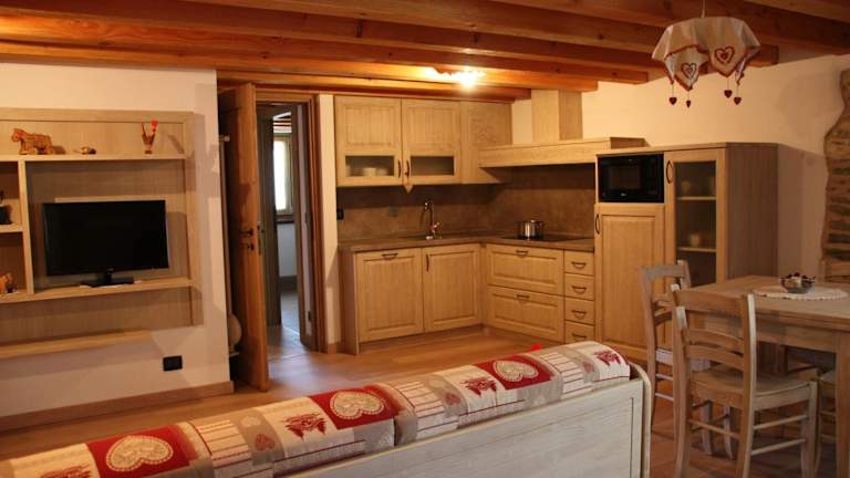 Die Zimmer in Lo Trapei sind mit einem Balkon und Bergblick ausgestattet. Sie verfügen über einen Sitzbereich, einen Flachbild-TV sowie eine voll ausgestattete Küchenzeile mit Kühlschrank, Geschirrspüler, Mikrowelle, Herdplatte und Wasserkocher. Ein eigenes Badezimmer mit Bidet und Haartrockner ist ebenfalls vorhanden.
