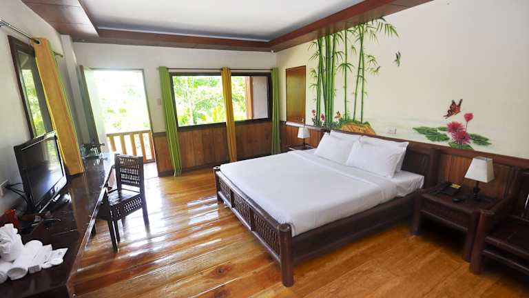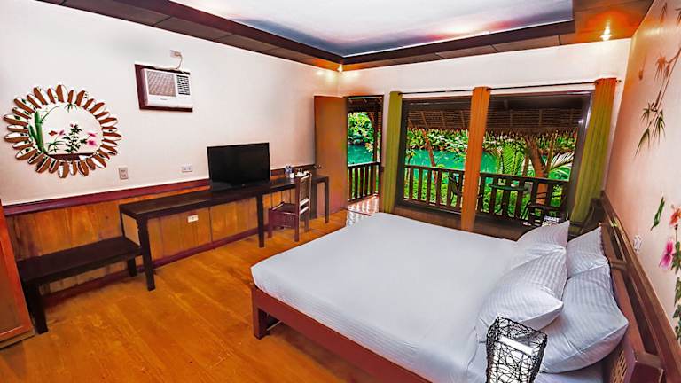 Die Zimmer im Loboc River Resort sind geschmackvoll eingerichtet und verbinden traditionelle Materialien mit modernem Komfort. Jedes Zimmer bietet einen eigenen Balkon mit Blick auf den Garten oder den Fluss. Zur Ausstattung gehören eine Klimaanlage, ein Kabel-TV und ein eigenes Badezimmer mit Dusche. Einige Zimmer verfügen auch über eine Küchenzeile und einen separaten Sitzbereich.