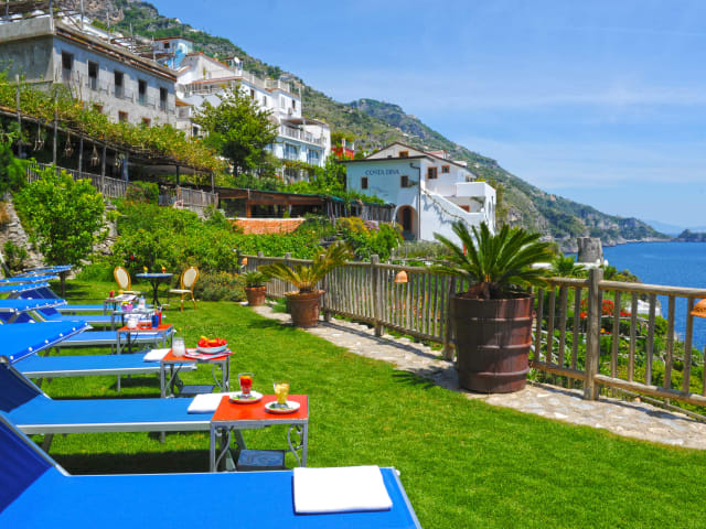 Das Locanda Costa Diva liegt in Praiano, einem charmanten Küstenort an der Amalfiküste. Von hier aus können Sie den beeindruckenden Blick auf das Mittelmeer genießen und die Schönheit der umliegenden Zitronenbäume erleben. Die Lage des Hotels ist ideal für Tagesausflüge entlang der Küste, da sowohl Positano als auch Amalfi nur eine kurze Autofahrt entfernt sind.
