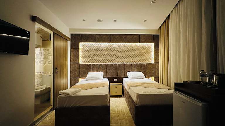 Die Zimmer sind mit Klimaanlage, Sitzbereich, Flachbild-TV mit Satellitenkanälen, Safe und eigenem Badezimmer mit Bidet sowie kostenfreien Pflegeprodukten und Haartrockner ausgestattet. Die Zimmer verfügen zudem über einen Wasserkocher, Bettwäsche und Handtücher. Einige Zimmer bieten einen Balkon oder Stadtblick.