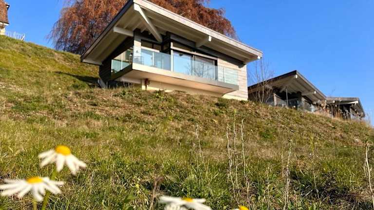 In der Lodge Glardons können Sie verschiedene Aktivitäten in der Umgebung genießen. Wandern Sie durch die malerische Landschaft, erkunden Sie die Umgebung mit dem Fahrrad oder entspannen Sie am privaten Strandbereich der Lodge. Die Terrasse mit Seeblick lädt zum Entspannen ein und bietet Sonnenliegen für Ihren Komfort.