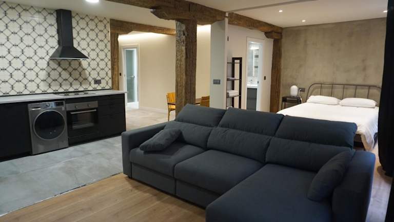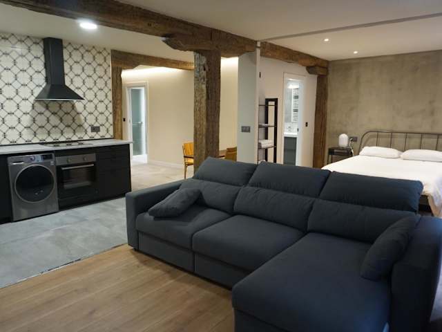 Buchen Sie das Loft 7calles, Casco Viejo für einen komfortablen und zentralen Aufenthalt in Bilbao. Das im Jahr 2018 erbaute Apartment bietet kostenfreies WLAN und eine erstklassige Lage in der Nähe von Sehenswürdigkeiten wie der Kathedrale von Santiago und dem Theater Arriaga. Genießen Sie den modernen Komfort der voll ausgestatteten Küche, der geräumigen Schlafzimmer und der stilvollen Badezimmer.