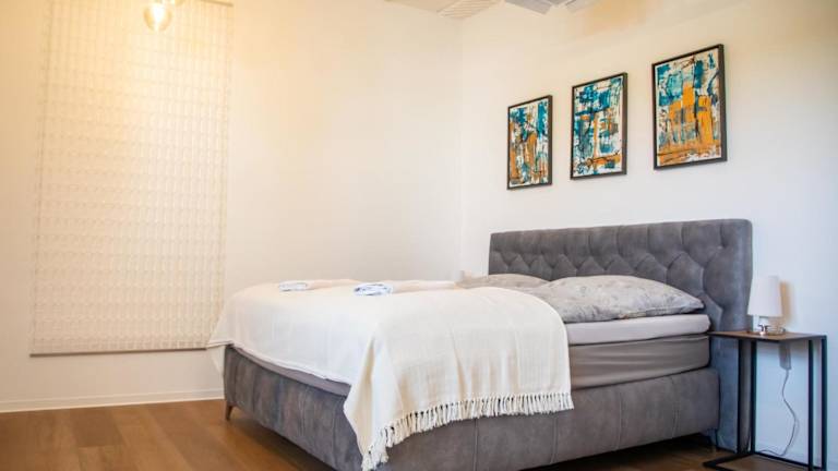 Die Ferienwohnung verfügt über 2 Schlafzimmer, 1 Badezimmer sowie über Annehmlichkeiten wie Bettwäsche, Handtücher, einen Flachbild-TV und einen Essbereich. Ein Balkon mit Blick auf die Stadt ergänzt die Ausstattung.