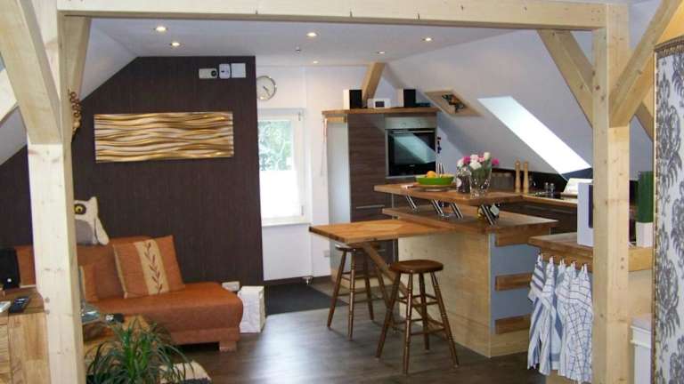 Die Loft-Ferienwohnung zur 'Kfz-Schenke' bietet eine komfortable Unterkunft mit Stadt- und Gartenblick. Die Ausstattung umfasst ein Schlafzimmer, ein Wohnzimmer und eine voll ausgestattete Küche. Die Unterkunft ist ideal für Reisende, die eine geräumige Ferienwohnung suchen.
