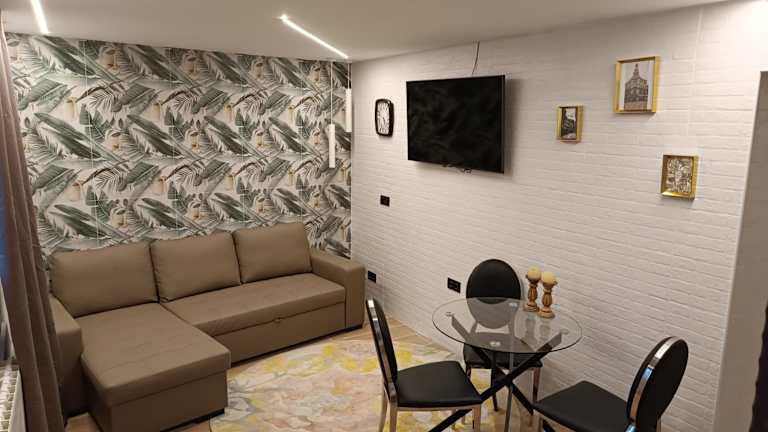 Die Ferienwohnung besteht aus einem separaten Schlafzimmer, einem Wohnzimmer und einer voll ausgestatteten Küche, die über einen Kühlschrank und einen Geschirrspüler verfügt. Außerdem gibt es ein Badezimmer. Handtücher und Bettwäsche werden zur Verfügung gestellt.
