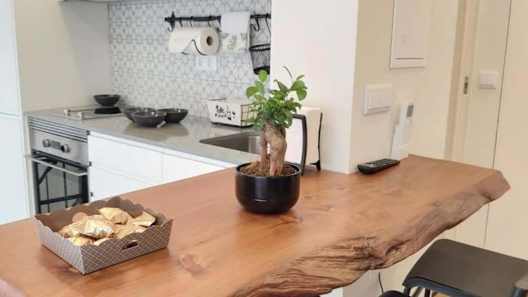 Die Ferienwohnung umfasst ein separates Schlafzimmer, eine voll ausgestattete Küche mit Kühlschrank und Ofen sowie ein Badezimmer. Handtücher und Bettwäsche sind vorhanden.
