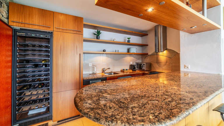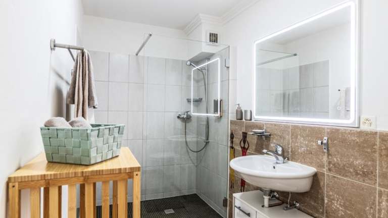 Die Ferienwohnung ist mit einer voll ausgestatteten Küche ausgestattet, die über einen Kühlschrank, Geschirrspüler, Ofen, Kaffeemaschine und Wasserkocher verfügt. Somit stehen den Gästen umfangreiche Möglichkeiten zur Selbstverpflegung zur Verfügung.