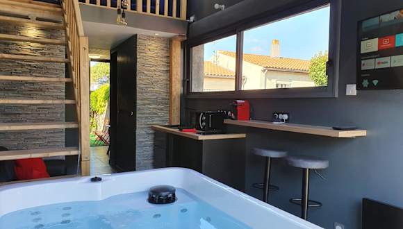 Das Loft Spa Bord de Mer Fouras - 800m des plages bietet eine ideale Unterkunft für einen Strandurlaub in Fouras. Mit seinem direkten Zugang zum Strand Plage de l'Esperance und einer Vielzahl von Annehmlichkeiten wie kostenlose Fahrräder, einem Spa- und Wellnesscenter und kostenfreiem WLAN, wird Ihr Aufenthalt zu einem unvergesslichen Erlebnis. Das Apartment selbst ist stilvoll eingerichtet und verfügt über eine Terrasse, auf der Sie entspannen können. Genießen Sie den Whirlpool und erkunden Sie die umliegenden Strände.