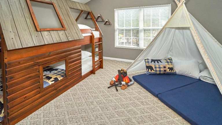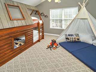 Log Bunk Bed, Playhouse, & TeePee-Willow Trace Retreat bietet komfortable Übernachtungsmöglichkeiten und ist als Ferienhaus gestaltet. Die Unterkunft verfügt über ein Gartenbereich und stellt Gästen kostenfreies WLAN zur Verfügung. Es wird darauf hingewiesen, dass der Check-in ab 16:00 Uhr und der Check-out bis 10:00 Uhr erfolgt. Diese Unterkunft bietet eine Nichtraucherumgebung und ist familienfreundlich.